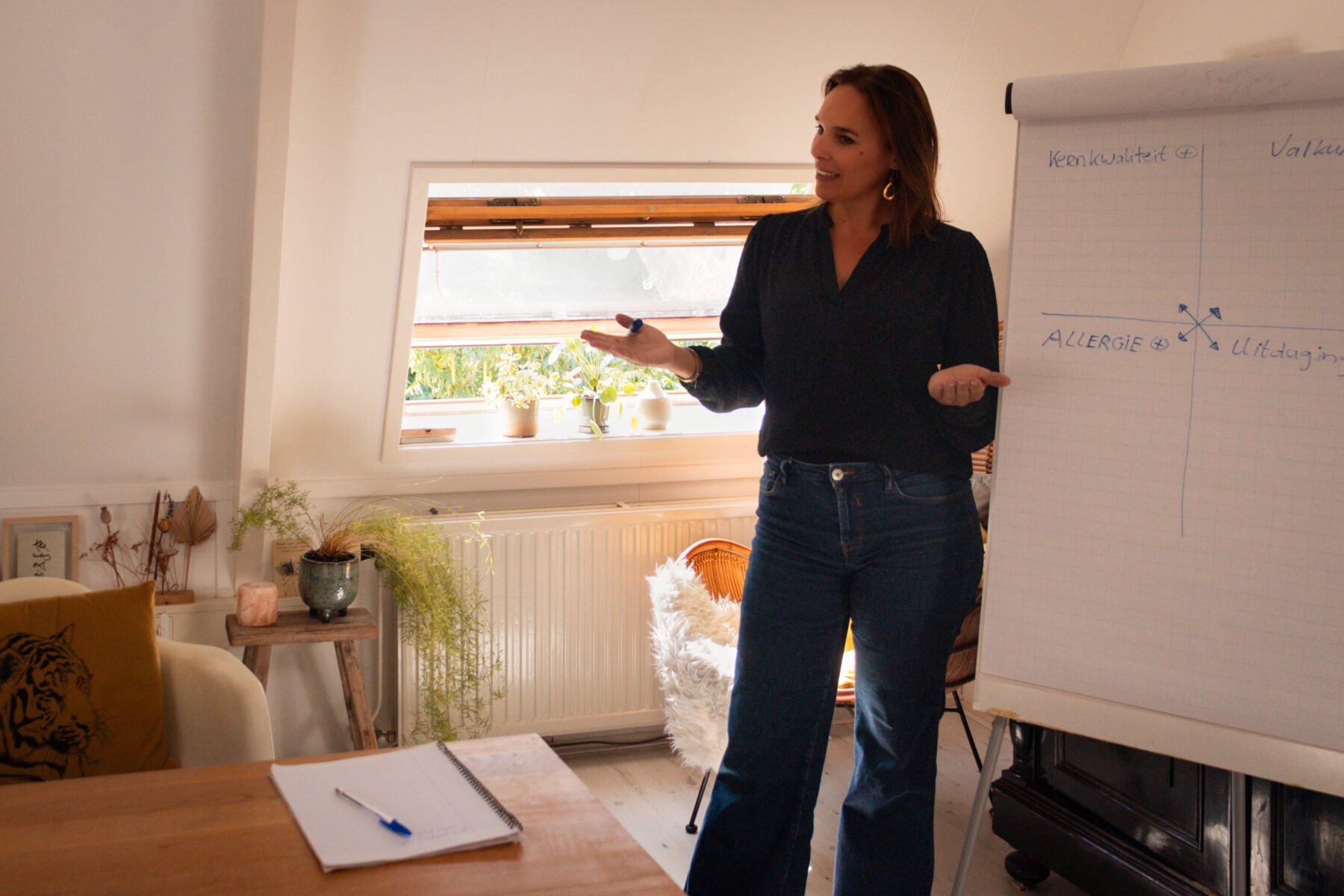 Het is een afwisselende training met oefenen, uitleg, ervaren en reflecteren. Niks geen presentatie op een beamer, maar een flip-over, stoelen en hard werken vanuit openheid en kwetsbaarheid. En natuurlijk ook met veel plezier!